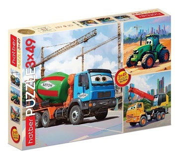 ПАЗЛЫ для детей 49 элементов А5ф 190х190мм `3 картинки в 1 коробке` -Стройтехника-