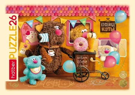 ПАЗЛЫ для детей 26 элементов А4ф 300х200мм в Рамке -Кофейные коты-