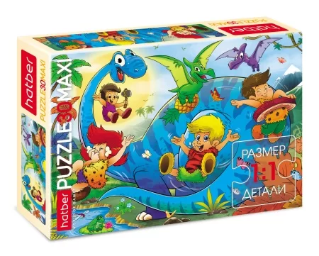 ПАЗЛЫ для детей 30 элементов А4ф 290х210мм MAXI-Приключения с Дино-