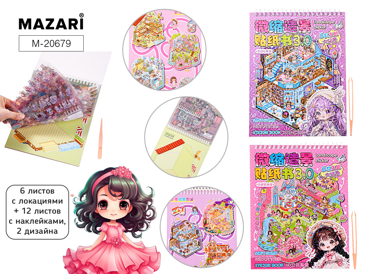 Наклейки РУМБОКС ДЕВОЧКИ, 6 локаций, 12 л. с накл.