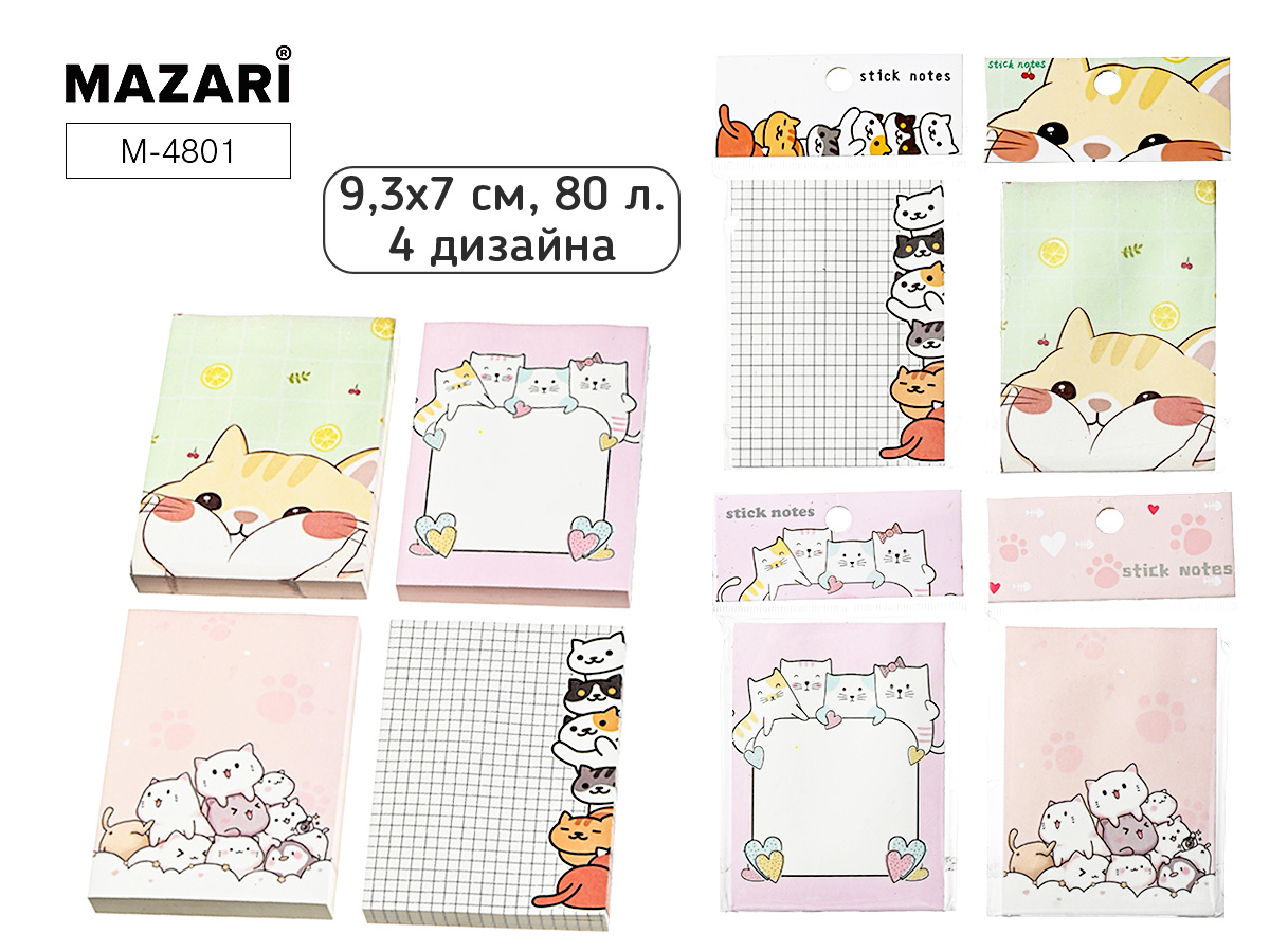 Блок д/зап. с липк.сл КОТИКИ, 7.5x8.0см, 30 л.
