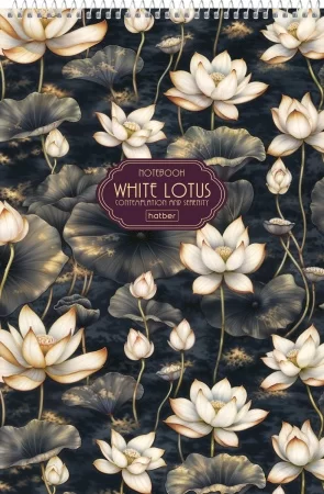 Блокнот 60л А4ф клетка Обл. мел.картон УФ-лак жесткая подложка на спирали-Белый лотос-