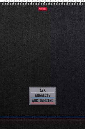 Блокнот 60л А4ф клетка Обл. мел.картон УФ-лак жесткая подложка на спирали-Дух, Доблесть, Достоинство-
