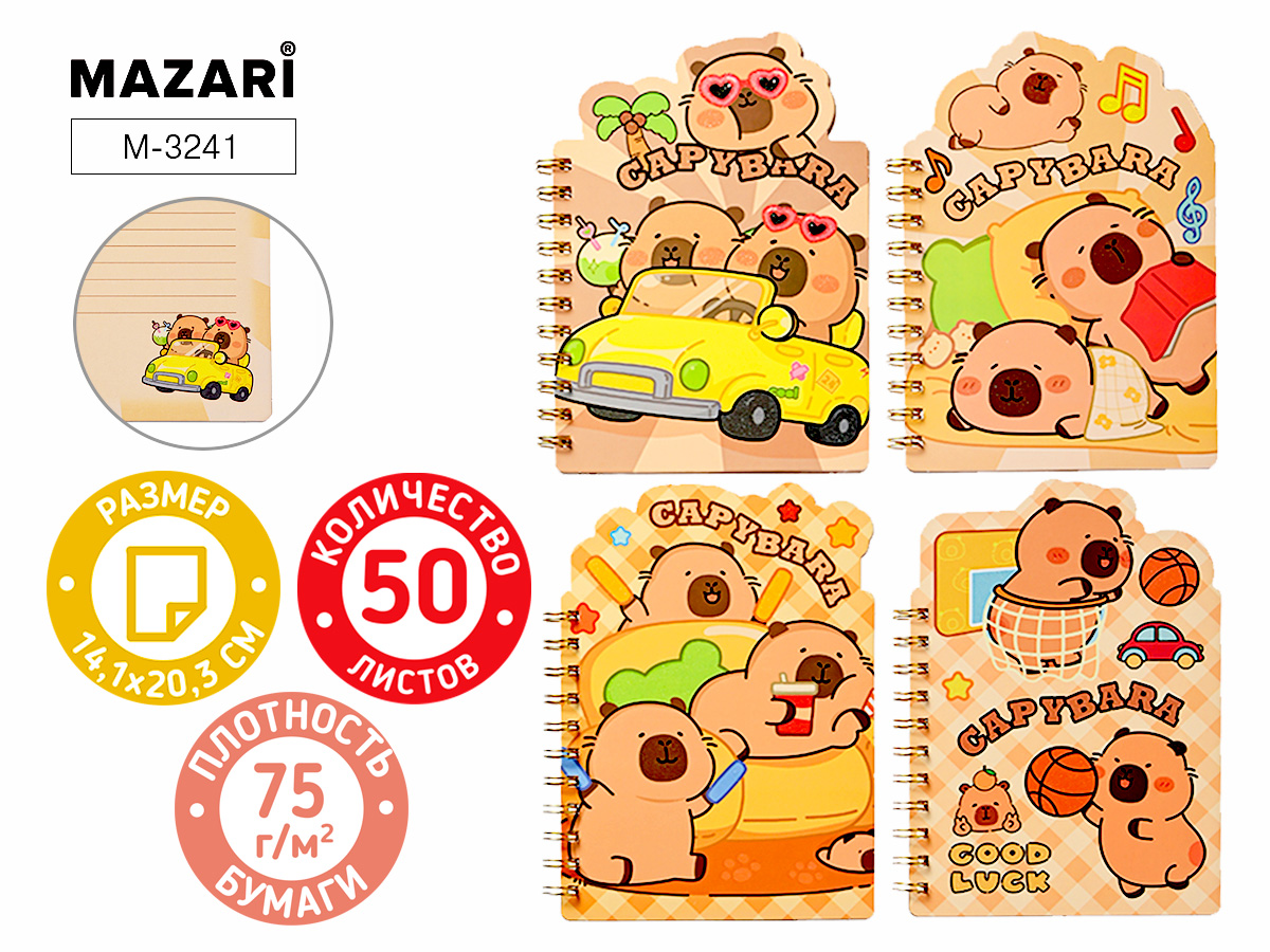 Блокнот на евроспирали КАПИБАРА 14.1х20,3 см, 50 л