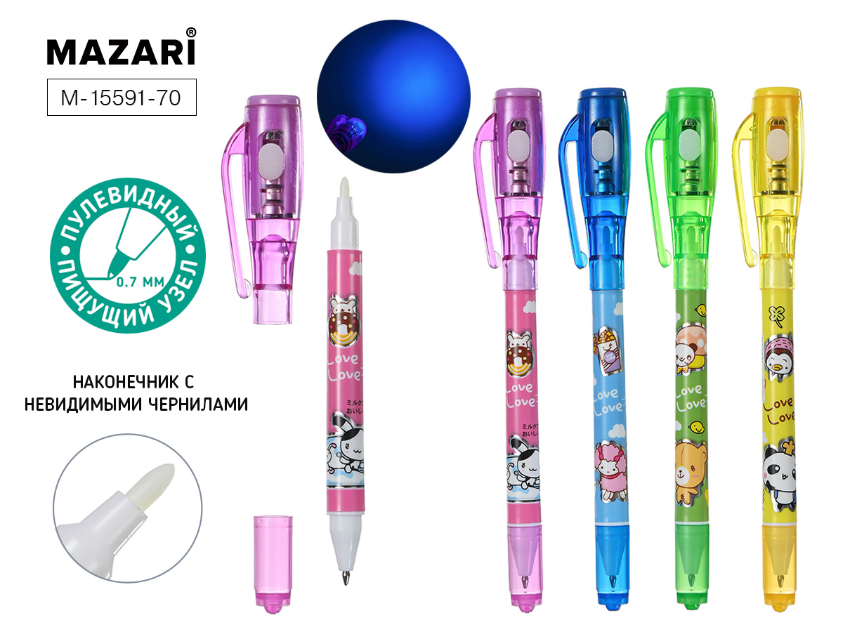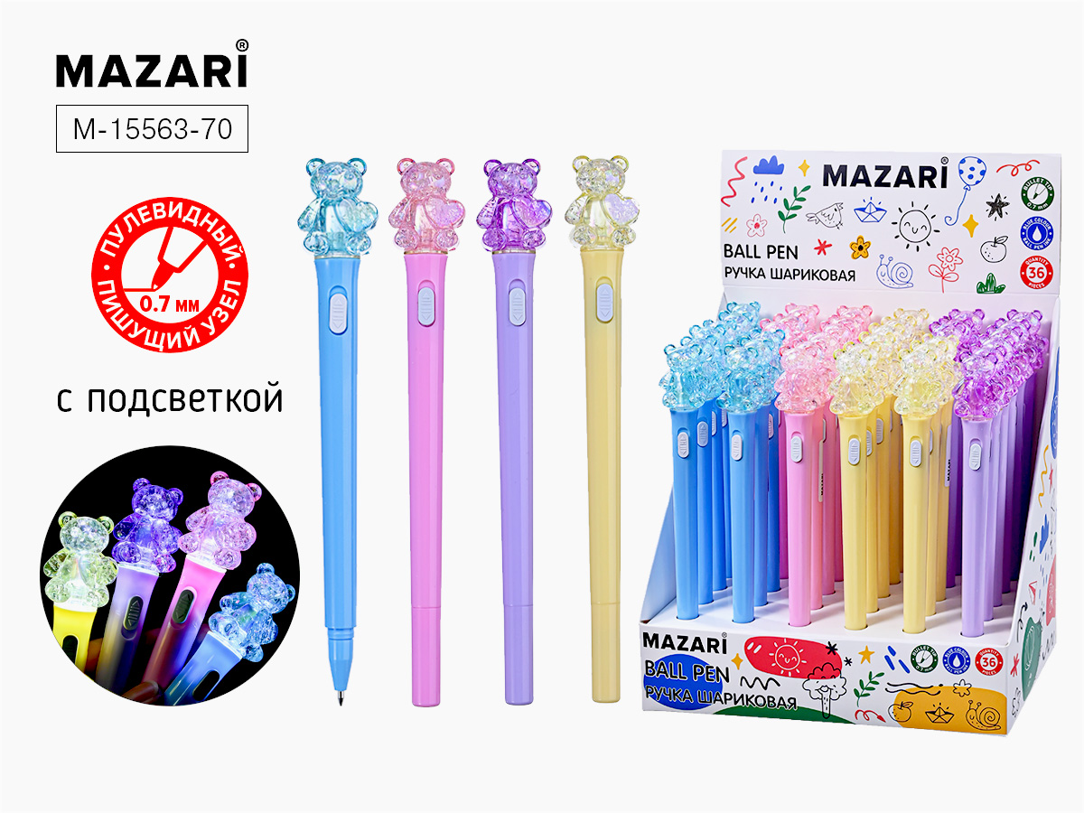 Ручка шариковая МИШКИ, с подсветкой,0.7мм