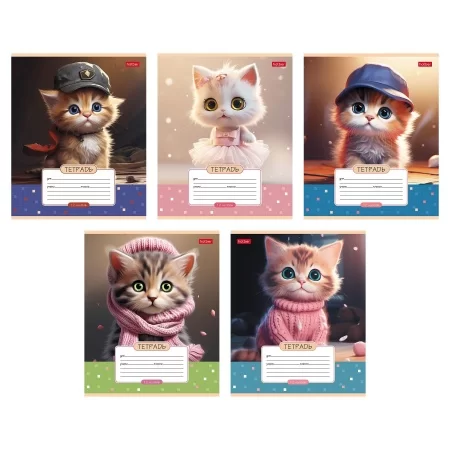 Тетрадь 12л А5ф клетка 60-65г/кв.м на скобе 5 диз.в блоке скругл.углы серия -Мы-котики!-