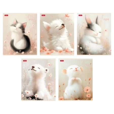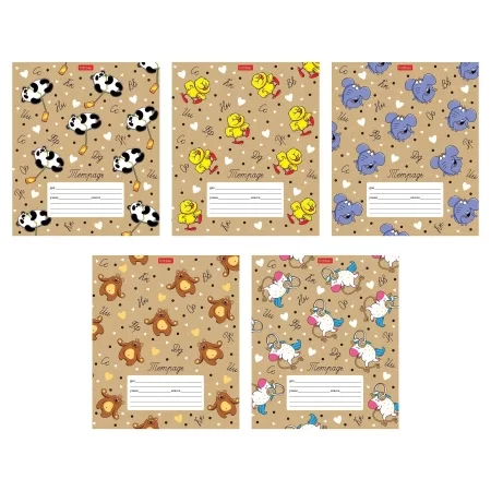 Тетрадь 12л А5ф ЛИНИЯ 60-65г/кв.м на скобе 5 диз.в блоке скругл.углы серия -Забавные зверушки-