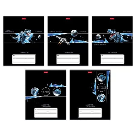 Тетрадь 18л А5ф клетка 60-65г/кв.м на скобе тиснение 5 диз.в блоке скругл.углы серия -Dino Space-