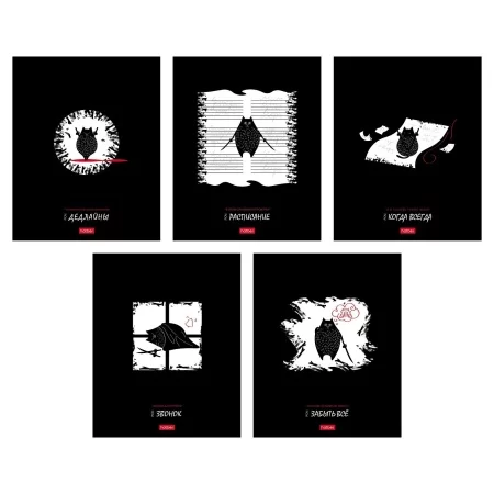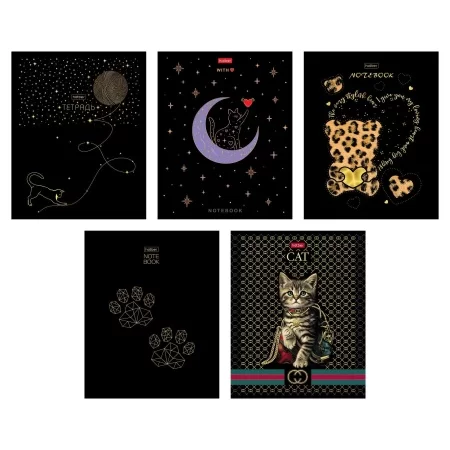 Тетрадь 48л А5ф клетка 60-65г/кв.м на скобе мат.ламин. 3D лак 5 диз.в блоке скругл.углы серия -Black Cat-