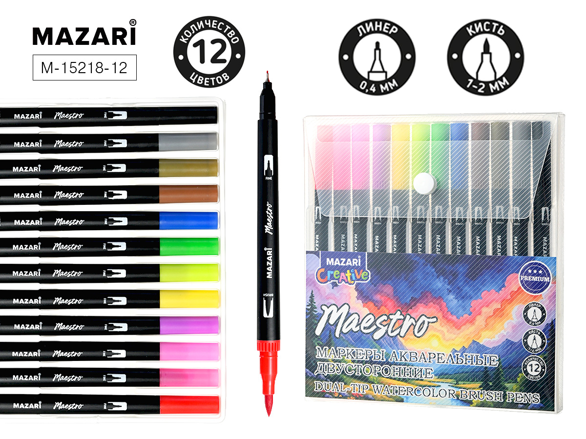 Маркеры акварельные двустор. Mazari Maestro 12цв.