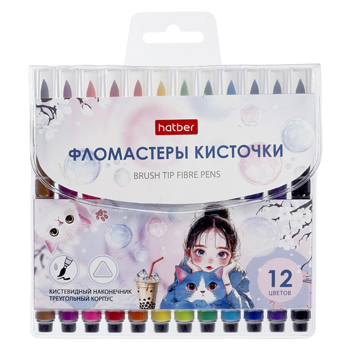 Фломастеры-кисти 12цв. Хатбер "Bubble tea"