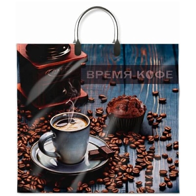 Пакет ПЭ с пластмассовыми ручками 38x35+10см (90) Время кофе ламинированный